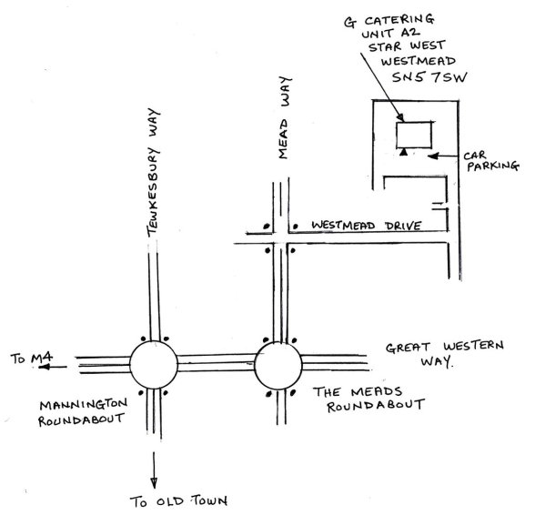 From Mead Way, turn into the Westmead Industrial Estate on Westmead Drive (at the traffic lights), continue straight as far as you can to the end of the road, then turn left at the T-junction and again continue straight as far as you can, then turn left again at this T-junction and G Catering Ltd will be found approximately 100 yards further down on the right hand side.